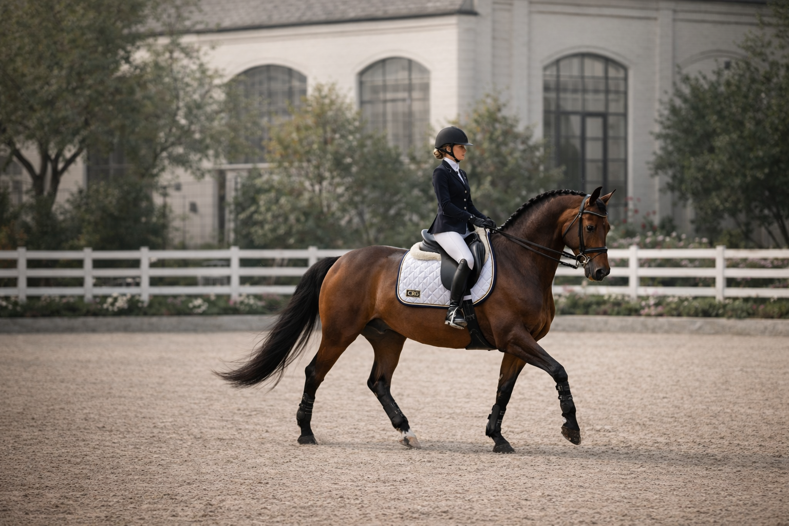 Premium Quality Cotton White Jumping Saddle Pad, Ear Bonnet & Horse Boot Set